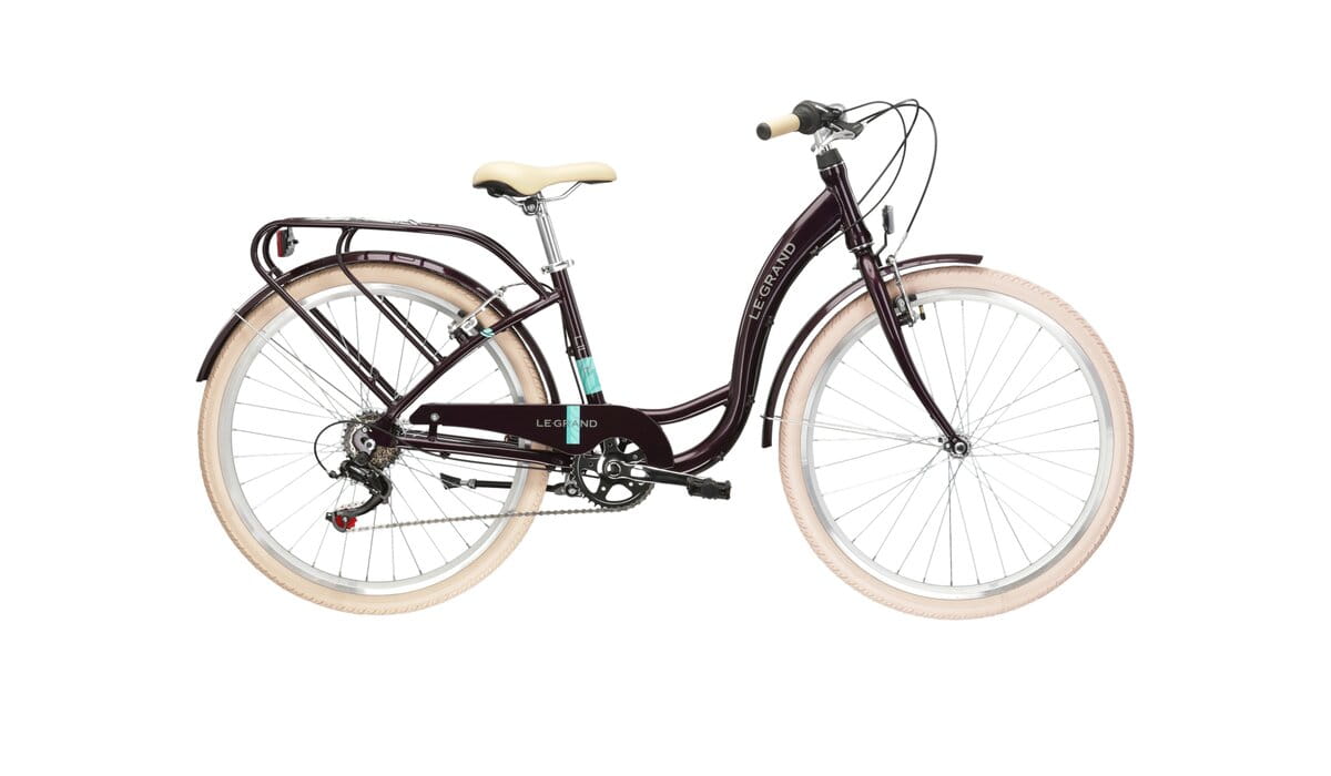 Le Grand Lille 1 to rower posiadający aluminiową ramę oraz stalowy widelec. Takie połączenie zapewnia mu niską wagę oraz doskonałe tłumienie drgań pochodzących nawet podczas jazdy po najgorszej nawierzchi. Tylna przerzutka Shimano Tourney obsługuje 6 biegów i umożliwi Ci dopasowanie przełożenia do aktualnego terenu. Rower miejski Le Grand Lille 1 został także wyposażony w dwa hamulce v-brake, które zatrzymają cię pewnie i skutecznie w każdych warunkach. Wyprostowana pozycja za kierownicą ułatwi Ci jazdę, a osłona łańcucha i pełne błotniki ochronią odzież przed zniszczeniem. 26 calowe koła pomogą ci pokonać miejskie przeszkody, które znajdą się na Twojej drodze, a szerokie opony pomogą zachować stabilność w trakcie jazdy.